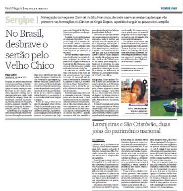 O encarte do Estadão intitulado ‘Viagem’ chamou atenção também para as belezas e encantos de Laranjeiras e São Cristovão, considerados duas joias do patrimônio nacional. Laranjeiras, localizada às margens do rio Cotinguiba, reconhecida como Patrimônio Histórico e Artístico Nacional, é uma região marcada pelo grande número de engenhos e o plantio da cana-de-açúcar. Seus grupos folclóricos fazem parte da tradição local e encantam turistas de todos os cantos do mundo.